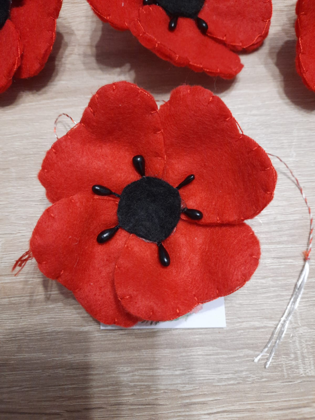Brosa este lucrata manual , din material textil moale, ddecorat cu stamine. Are aproximativ 7 cm. Are ac de brosa cu platou. Este foarte decorativ, foarte apreciat si cautat. Se vede de la distanta pe orice piesa de vestimentatie.